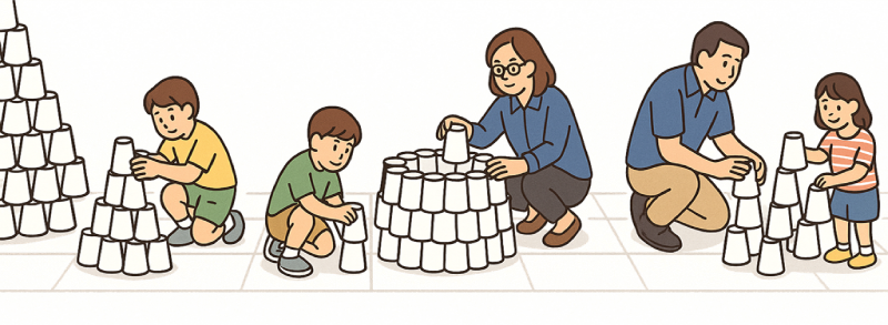 今年は、みなさん個別につくった建物が、ひとつの大きな「まち」として完成する「紙コップシティ」。